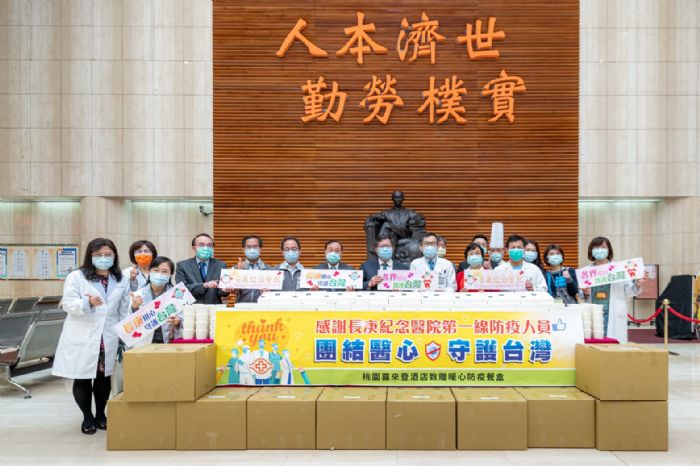 桃園市長鄭文燦28日下午前往龜山區,出席「桃園喜來登酒店暖心防疫餐盒致贈林口長庚紀念醫院儀式」。鄭市長表示,林口長庚醫院位於國家大門,自疫情爆發以來,在第一線辛苦推動各項防疫工作。桃園喜來登酒店今日特製300份兼具地方特色以及養生觀念的五星級餐盒,並由李三連董事長親率團隊前往林口長庚醫院慰勞醫護同仁,鄭市長期許業者與全民共同加入防疫工作,也向所有醫護同仁傳達最大的鼓勵。