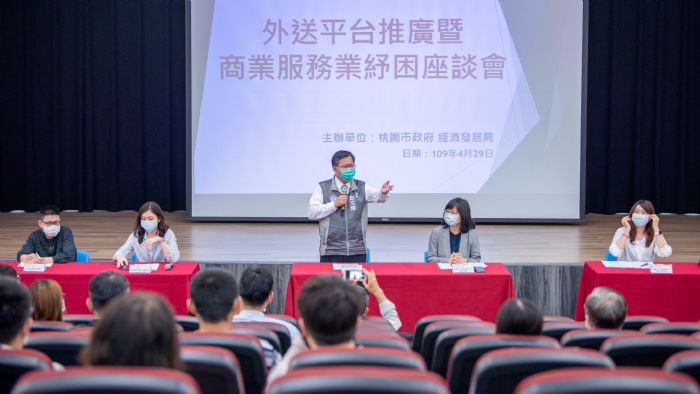 桃園市長鄭文燦(29)日下午於桃園區綜合會議廳,出席「外送平台推廣座談會」時表示,受到疫情影響,市民朋友消費習慣改變,連帶衝擊桃園市店家生意,市府經發局積極推動相應紓困措施,並於今日辦理外送平台推廣座談會,邀請外送平台商Uber Eats及Foodpanda業者介紹方案,亦推薦商家能夠多元運用各式平台,例如抽成比例較低的「外送國家隊」,就是餐飲業者可選擇的方案之一;同時,鄭市長也再次呼籲各大外送平台,盼能考量於疫情階段降低外送抽成比例,不僅保護各商家權益,也讓在地業者順利轉型,增加行銷通路。