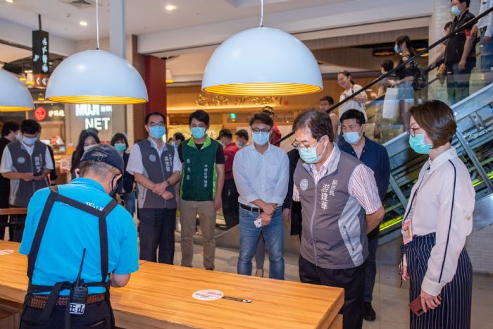 桃園市副市長游建華3日下午前往中壢區視察大江購物中心防疫措施。游副市長說,大江購物中心為桃園南區主要的綜合購物中心,業者在防疫期間配合市府政策,落實多項防疫工作,包括顧客入館前須量測體溫、員工皆須配戴口罩、上班前量測體溫;此外,公共設施及美食廣場桌椅定期消毒,並提醒顧客保持安全社交距離,感謝業者配合各項防疫措施,希望消費者在購物時也能落實良好的衛生習慣。