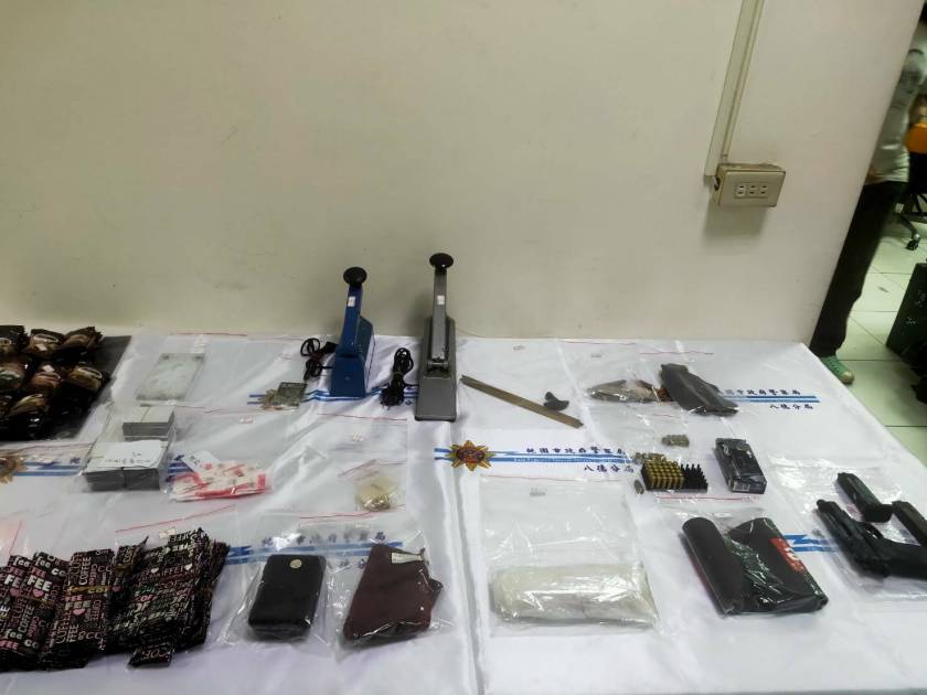 警方於龜山區文化三路張男租屋處當場查獲其持有改造槍枝及毒品乙批,專案行動共查獲改造小型烏茲衝鋒槍1把(可連發式)、長短彈匣各1個、子彈37顆、已擊發子彈7顆、愷他命1包(含袋重約700克)、黑色咖啡包107包(含袋重約1000公克)、搖頭丸20顆(毛重約10公克)、一粒眠1包粉狀(含袋重約25公克)、一粒眠287顆(毛重約50公克) 及封口機2具、電子磅秤一台等扣案證物,警方訊後除依照槍砲和毒品罪嫌將張男移送法辦,並將持續向上溯源追查。