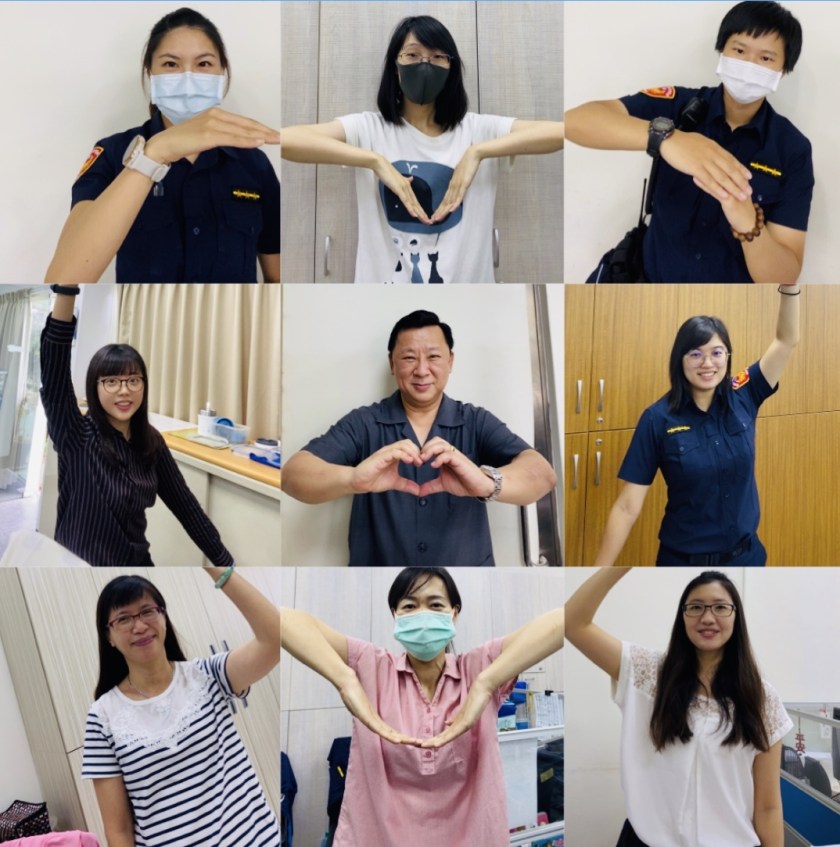 慶祝母親節,中壢警分局長劉印宮與女性同仁,將相片拼貼「愛心」溫馨告白。