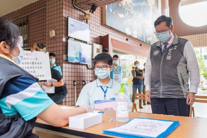 桃園市長鄭文燦12日下午前往桃園市立陽明高中,視察109年國中教育會考考場防疫整備情形。鄭市長表示,今(109)年國中教育會考將於5月16日至17日登場,桃園考區報名人數共2萬1,801人,因應此波肺炎疫情,各考場已充分做好防疫整備,包括發燒考生的篩檢、備用考場準備、試卷發送流程、用餐隔板規範等,各層面皆考慮周延,以高標準防疫作為,維護考生健康及權利,也祝福各位考生應試順利。