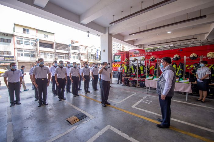 鄭市長說,面對疫情必須抱持著高標準,執勤過程要落實防疫標準作業,保護自身安全,對於所需的防疫物資,市府也提前準備2,000多件防護衣備用,讓防護裝備能夠充分到位,保障消防人員的安全。鄭市長指出,為支持消防同仁,如有載送確診案例者,將給予5,000元獎勵金,載送非確診案例的同仁,則給予3,000元獎勵金,消防局將會儘速發放第一階段獎勵金,在經費許可的情況下,市府也會研擬第二階段的獎勵金,鼓勵所有消防人員的防疫辛勞。