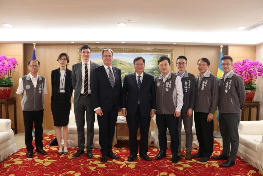 瑞典貿易委員會台北辦事處代表言禾康,13日拜訪桃園市長鄭文燦,針對城市永續、綠色交通、循環經濟及廢棄物處理經驗交流,並討論未來合作可能。
