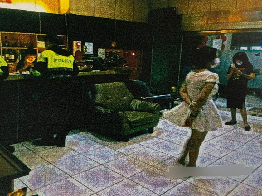 約1小時後警方回馬槍方式再次前往突襲,果然發現兩人桌上卻有四個杯子,經曉以大義酒客坦承有叫小姐坐檯,該店明顯涉有違反「嚴重特殊傳染性肺炎防治及紓困振興特別條例」,警方當場告誡業者不得違反政府法令,並將相關資料抄豋,移請桃園市政府衛生局、經發局裁處。