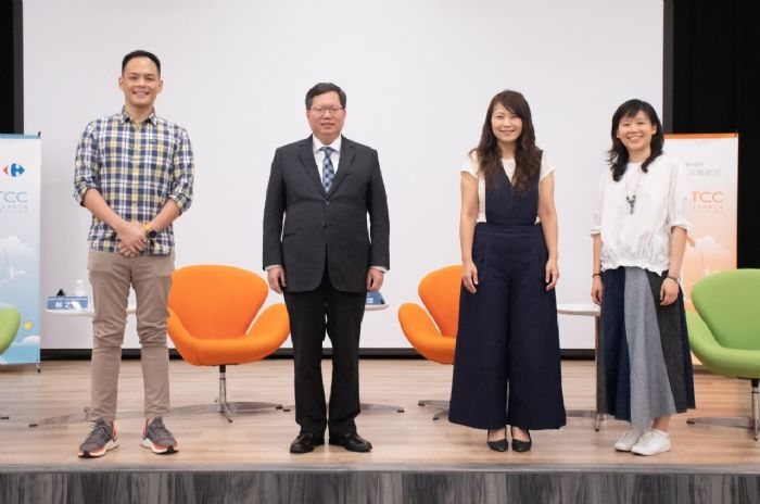 今日由天下雜誌轉型總監黃嘉倫擔任主持人,桃園市長鄭文燦、台灣大哥大總經理AppWorks董事長暨合夥人林之晨、家樂福企業社會責任暨溝通總監蘇小真共同為與談人,論壇線上連結(網址:https://tinyurl.com/y7oyekq4);包括市府青年局長顏蔚慈亦一同出席活動。