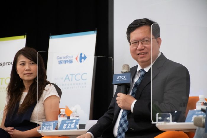 桃園市長鄭文燦(17)日下午前往桃園市綜合會議廳,出席「18th ATCC全國大專院校商業個案大賽開幕論壇」。鄭市長針對台灣青年就業、青年能力培養、如何找到人生志業,以及政府在永續發展角色等議題,分享自身經驗、施政實務並提出看法,期勉年輕人發揮潛力和創意,透過跨領域學習累積實力,激發創新思維,提升競爭力,桃市府亦會協助創造多元機會,讓青年夢想起飛。