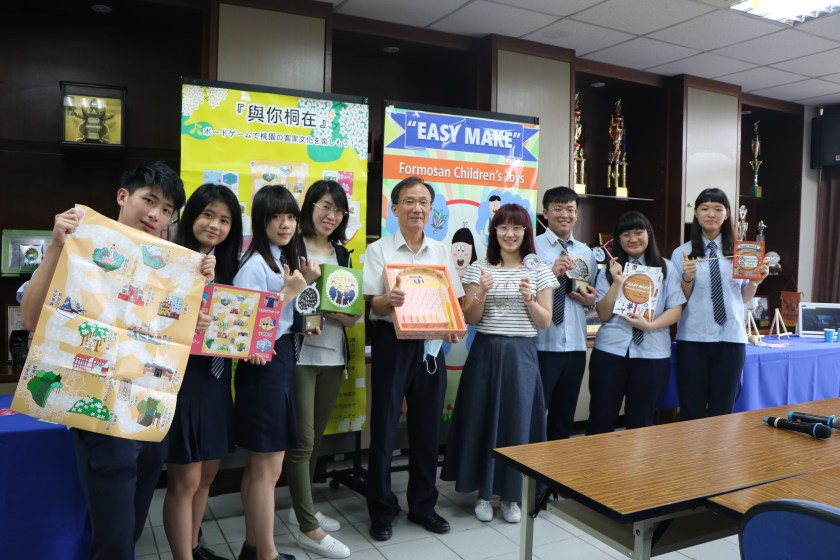 六和高中應日科獲獎的作品為「與你桐在」,這款桌遊的是呼應政府「浪漫台三線」的政策,結合桃園在地客家文化的音樂,玩家掃描QR-CODE即可得到聆聽到客家傳統的音樂,卡牌上繪製客家美食、建築、服飾、祭典等相關資訊,讓日本觀光客運用桌遊,能實地前來桃園觀光,希望可以讓日本觀光客破除語言的限制,了解桃園在地客家文化,為觀光盡一份心力。獲獎同學表示,在統測與專題競賽的雙重壓力下,時間的管理與工作的分配顯得十分重要,在老師的協助下,解決了翻譯上的困難,才能順利繼續下去。