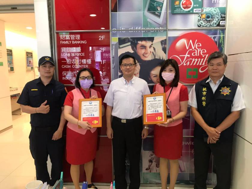 八德分局8日表揚轄內銀行阻詐有功人員,其中中國信託銀行八德分行於108年7月及今年4月,成功阻止兩起詐騙案件,總金額高達新臺幣160萬元,由分行經理林珮瑜、襄理甘婷婷代表接受頒獎;經理林珮瑜也表示今後也會繼續和警察共同守護人民的財產,讓人民的血汗錢不會被歹徒用詐術騙走。