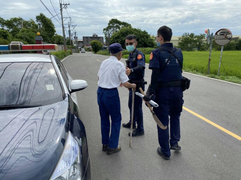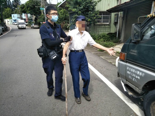平鎮警分局宋屋派出所所長姚金寶表示,家住平鎮區陸光路,略有失智的蕭姓老翁,10日上午不知何故,趁著家人不注意,獨自一人拄著拐杖,拿著鐮刀出門,漫無目的地亂走,越走越偏僻,因老翁年事已高,略有失智,讓老翁出了門,卻忘了回家的路,且在烈日的炙烤下,讓老翁體力有些不濟。