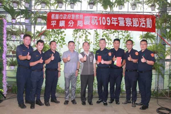 平鎮警分局為慶祝109年警察節,特別於11日下午,由分局長李建民及平鎮警友辦事處,宴請分局同仁享用歐式下午茶餐點,警察局長陳國進更是特別蒞臨嘉勉績優同仁,除此之外,本次慶祝活動更舉辦健行及籃球比賽,讓各單位同仁凝聚團隊精神,藉此慰勞辛苦的員警,平鎮警友辦事處主任葉雲宙更加碼贈送每位員警知名運動鞋及運動外套,讓大夥渡過屬於自己專屬的節日,員警直呼「真是太棒了」!