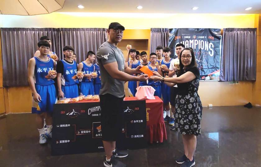 永平工商校長蔣香蘭頒贈獎學金,鼓勵籃球隊再接再厲。