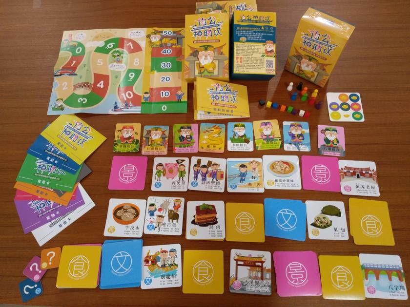 以客家守護神「伯公(華語:土地公)」出遊為主軸的《伯公神助攻》桌遊,可讓2到8人的大小朋友在茶園、樹頭、石頭、水頭等不同伯公的守護下,透過36張記憶翻牌猜牌的遊戲過程中,以客語說出乙未戰祭、牽罟、范姜老屋、粄圓、封肉等桃園客家特色景點、美食及文化活動,並使用與伯公有關的客家諺語,如「竹頭尾吊伯公(寓意:得意)」、「伯公轉夜(寓意:收成)」等作為超能力來取得分數。為鼓勵玩家開口說客語,亦設計說越多客語詞彙得分越高的機制,最先抵達終點50分或分數最高者為勝。