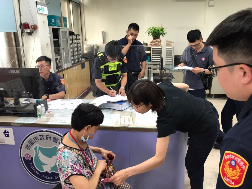 楊梅警分局楊梅派出所警員郭昶成、簡睿雅23日近正午時在中山路巡邏時,發現一名老婦獨自蹲坐在分局人行道上,且神情有異,遂連忙趨前關心。