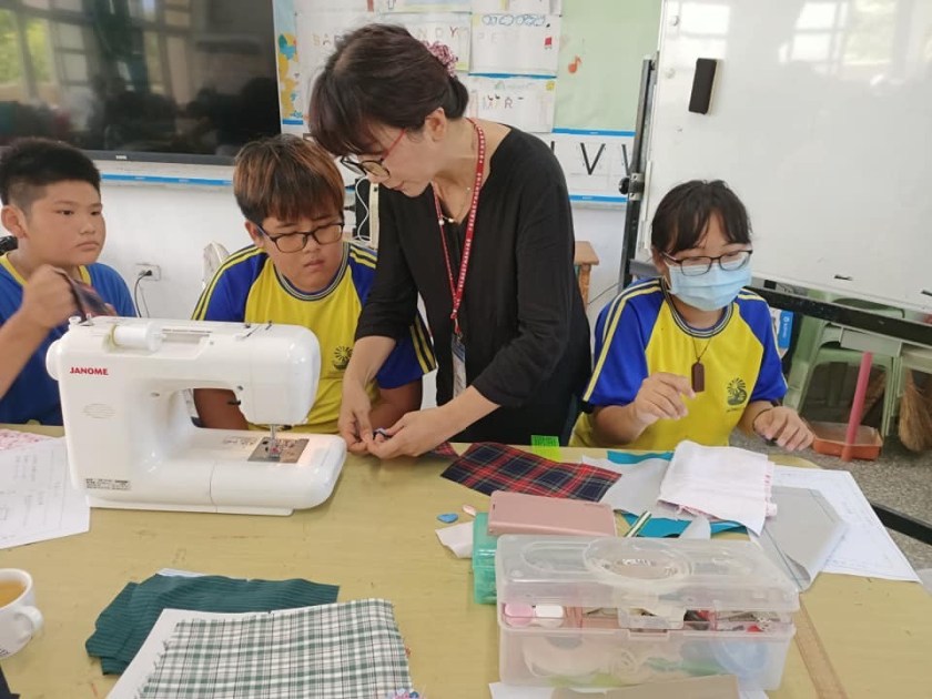 大小朋友一起手牽手體驗縫紉製作。
