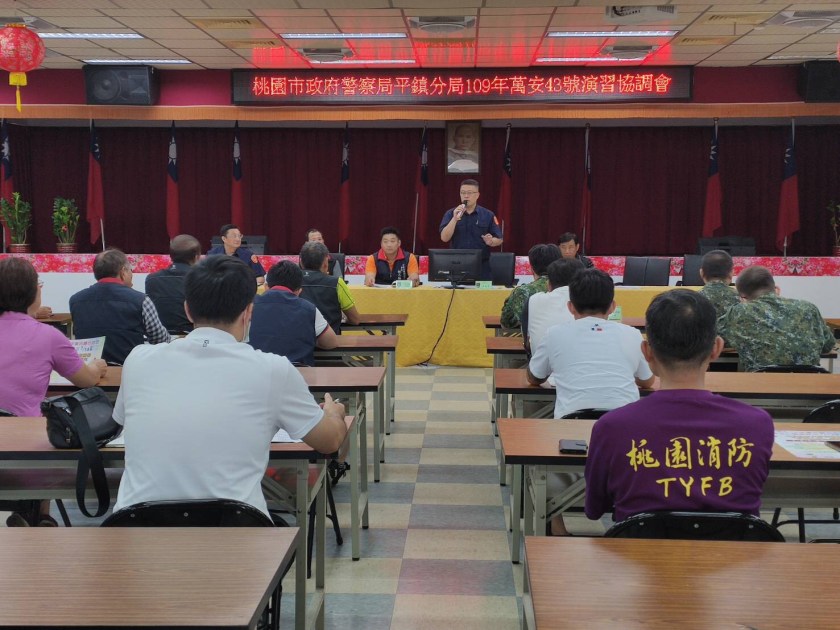 平鎮警分局8日特別邀集平鎮區公所、平鎮區各消防分隊、各里辦公處及各校代表,以及陸軍通訊學校等軍方單位、義警中隊及民防中隊等相關友軍,共同召開「萬安43號演習工作協調會」商討執行,希望透過橫向的聯繫與協調,讓本次演習能夠順利圓滿。