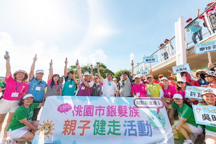 桃園市長鄭文燦18日上午前往新勢公園天幕籃球場,出席「109年桃園市銀髮族親子健走活動」。鄭市長表示,今日健走活動吸引近千名銀髮族共同參與,健康是老年生活的基礎,桃園一直以來非常用心地照顧長者,希望鼓勵健康或處於亞健康狀態的長者多參與活動,增加社交生活,以維持良好的健康狀態,未來市府也會多多在新勢公園舉辦活動,帶領市民朋友體驗老街溪畔的美景。