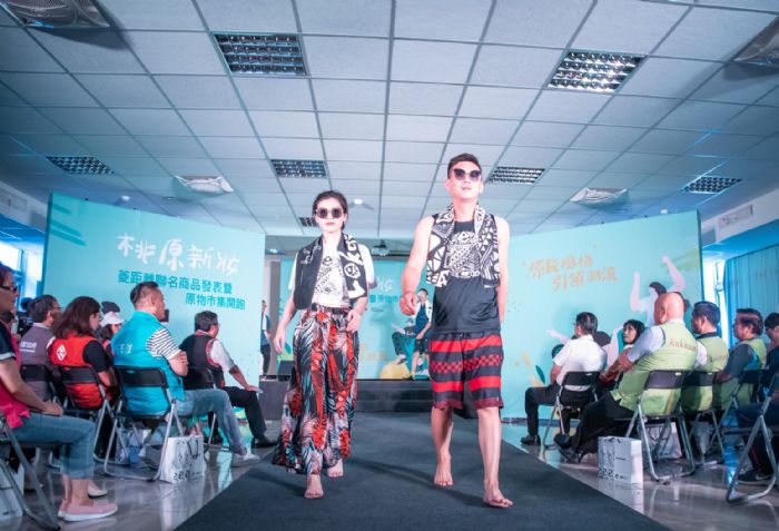 鄭文燦說明,「桃原基會X雅婕有限公司」首次共同聯名開發的原民風運動商品,是由駐點於大溪原民會館、具有阿美族身分的林惠美設計師所設計,結合原民圖騰於運動中,並透過今日活動走秀形式,展現原民文化風格,本次所設計的一系列商品將會在「菱距離購物商城」網站上販售,並於全台愛買DM曝光,在愛買桃園店及板橋南雅店實體通路販售。