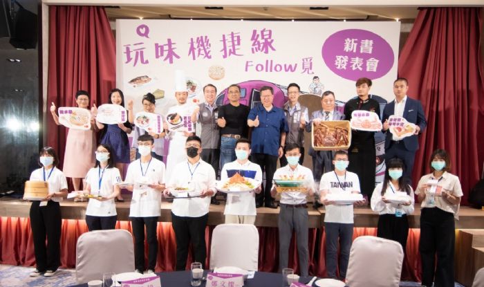今日發表會現場,桃捷公司特別營造傳統「辦桌」氛圍,邀請書中知名店家端出好料理,包括:點水樓的七彩小籠包及三味拉糕、坐著做的黑鮪魚生魚片、添好運的一口蛋塔、喜來登酒店花水木日式餐廳的蒲燒平安魚飯、河馬水產的清蒸帝王蟹及上湯大蝦意麵、在地美食劉媽媽菜包等,並搭配傳統說唱表演,讓市民朋友體驗熱鬧的美食饗宴。