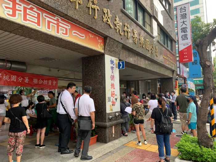 桃園分署今天上午進行車輛拍賣程序,甫開賣即以8,000元拍定1輛中華休旅車(2004年出廠),現場買車民眾意猶未盡,直呼下次還要再來搶標;而今日下午2時30分開始進行投標的不動產拍賣,時間未到,有意應買的民眾即陸續到場前來詢問相關事宜,其中又以位於平鎮區的電梯別墅(金陵十二富社區)詢問度最高,該戶別墅計13人投標,其中包含本分署首例通訊標單,最終以973萬9,200元拍定。