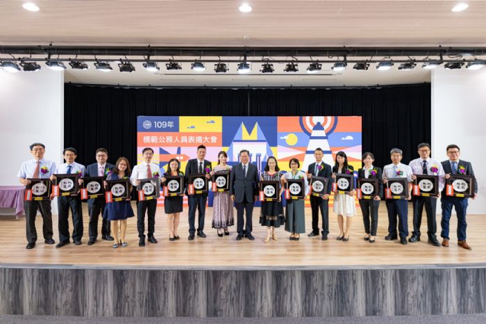 桃園市長鄭文燦(6)日上午前往市府綜合會議廳,出席「桃園市109年模範公務人員表揚大會」時表示,今(109)年桃園模範公務人員共計16位獲獎,其中養護工程處總工程司高必嫻及警察局交通警察大隊組長陳國煌,將代表市府參加行政院模範公務人員選拔,這16位公務人員經過精挑細選,具有能力、承擔及創意,是廉能政府的最佳表率,也讓桃園在城市建設、政府服務及光榮感的創造皆添加相當大的力量,因而獲得選拔與肯定,值得鼓勵。
