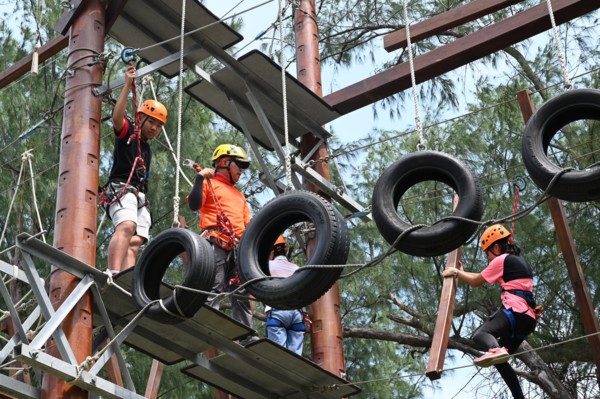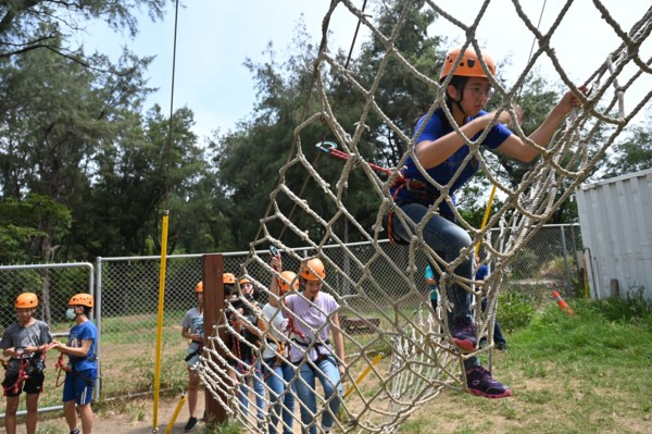 楊梅分局以「團隊合作及自我挑戰」理念為活動規劃重點,透過參與高低空體驗活動,結合團隊合作的運動,發揮個人體能並培養團體默契,學習互相信賴、挑戰自我極限,達到教育淬勵學生能於困境中達成任務之心志。
