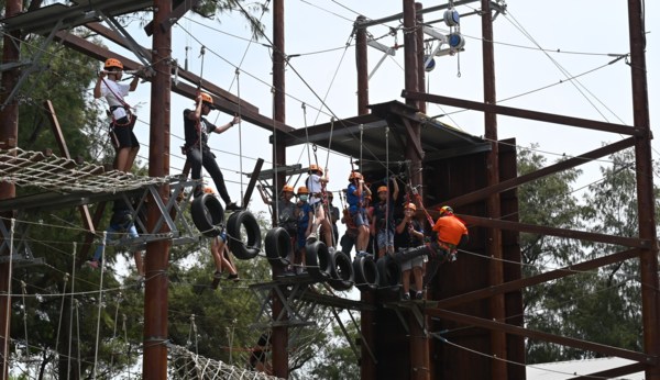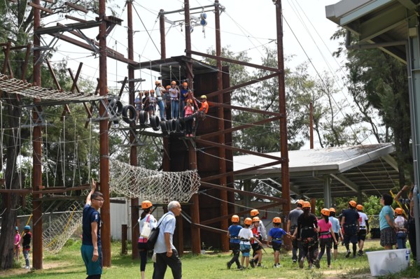 分局長黃富村致詞表示,勉勵學生暑期應有正常休閒活動,本次活動內容有高(如高空獨木橋、高空藤蔓路、空中飛人)、低空體驗設施、CS安全弓箭、人體手足球…等,藉由活動可加強學生團體意識,在活動中加強與隊友的互動達到團體的榮譽。