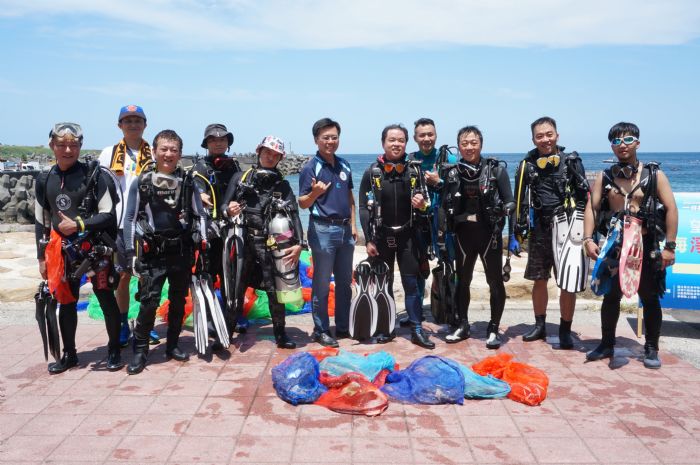 桃園市環保潛水隊15日北上基隆潮境公園參加由Discovery傳播集團所發起的「一件好事救海洋」活動,與來自全國各地的愛海潛水人士共同清除海底垃圾,一起將久沉海底、嚴重破壞生態的破漁網及海廢垃圾打撈上岸,以實際行動宣示維護海洋環境的決心,為愛護海洋盡一份心力。