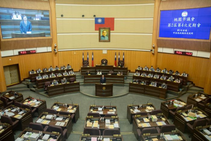 桃園市長鄭文燦(17)日上午於桃園市議會第2屆第4次定期會進行施政報告時表示,今(109)年上半年新冠肺炎疫情,為台灣及桃園帶來重大挑戰,桃園站在國門防疫第一線,在市府團隊以及市民通力合作下,讓疫情獲得控制,寫下防疫好成績,也贏得國際社會尊重以及國人的信心;鄭市長說,後疫情時代,桃園將全力拚經濟、拚建設、拚投資、拚就業,讓台灣寫下另一個奇蹟。