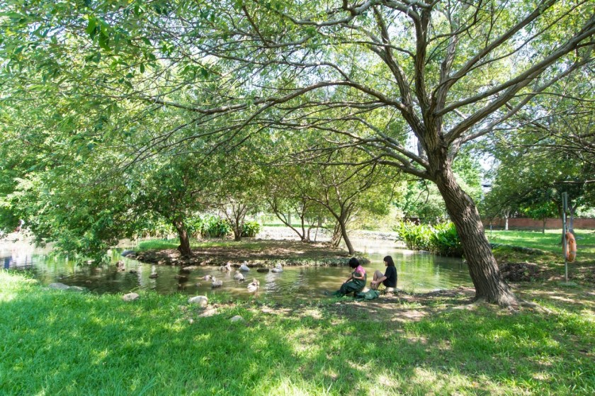 桃園市長鄭文燦25日上午前往霄裡福山宮,視察八德區霄裡生態池增設環池步道工程時表示,八德區竹園、霄裡里人口數約7,000人,屬於鄉村型社區,缺乏都市計畫公園用地,市府規劃明(110)年編列400萬元預算,改造約0.79公頃土地總面積的霄裡生態池,八德區公所將在維持埤塘灌溉功能下,增設環池步道,修繕既有木造平台與步道、增設座椅休息區、改善無障礙、夜間照明設備及遊憩等設施,而因建案被切斷的自然泉水水脈部分,水務局也將接續區公所的工程,運用導水系統恢復水脈,讓生態池重現活力,增加親水環境及親子同樂空間,讓八德區霄裡生態池成為兼具灌溉、景觀及遊憩功能的生態景觀公園。
