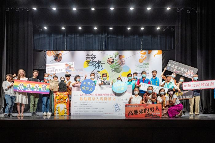 莊局長也說,「2020 TAOasis藝術綠洲創作計畫」為售票演出,即日起至9/10購買享有早鳥票7折優惠,購買節目任2張以上享有套票75折優惠,更多優惠及節目資訊請上兩廳院售票網搜尋「藝術綠洲創作計畫」(https://www.artsticket.com.tw/)。包括市議員黃家齊、黃景熙、市府文化局長莊秀美、桃園區副區長胡美華、軟綿尾巴組、本丸製作、自然而然劇團、慢島劇團團長及成員均一同出席記者會。