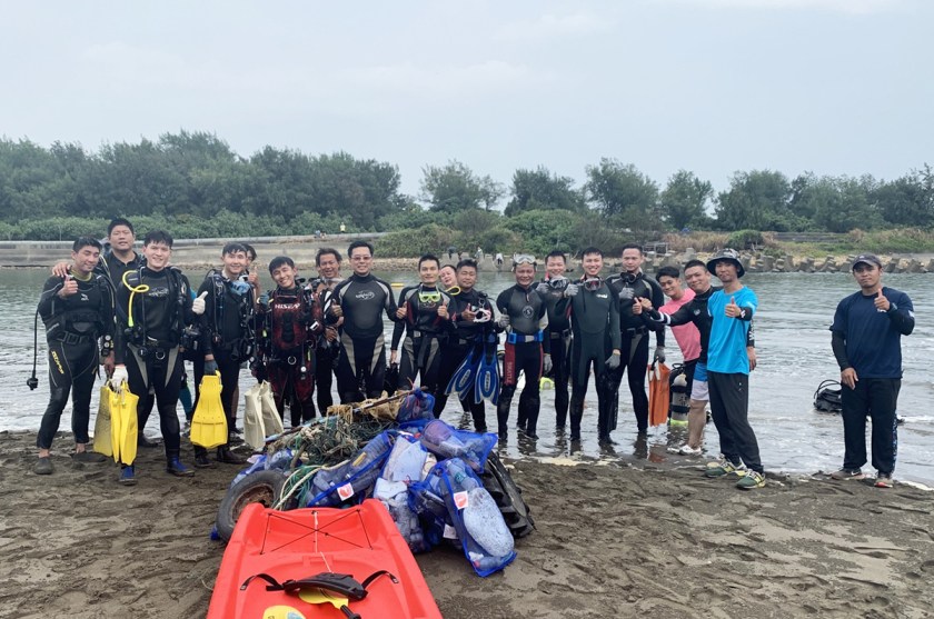 中央大學「藍海環保潛水隊」在桃園新屋溪出海口執行任務,因海水濁度高,不易觀察和清理,執行任務辛苦而艱鉅。