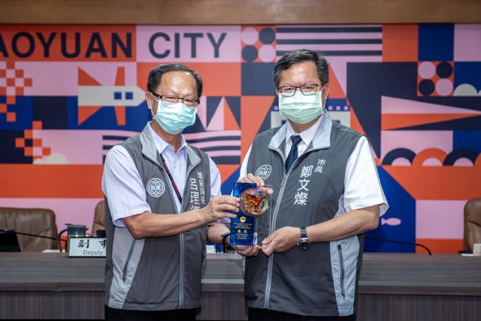 桃園市長鄭文燦2日上午主持市政會議,接受環保局呈獻108年度行政院環保署地方績效考核10項考核優異獎項及「2020傑出公關獎」危機管理獎-優異獎。鄭市長表示,環保局同仁及相關協力單位共同努力,在空氣污染防治、水污染防治、土壤及地下水污染整治、提升垃圾處理量能、焚化再生粒料、環境教育扎根、氣候變遷因應行動、綠色採購推動、環境清潔維護及資源回收工作等方面皆提出創新作法,在108年行政院環境保護署地方績效考核拿下10項大獎,今(109)年也獲得「2020傑出公關獎」危機管理獎-優異獎,成績斐然值得肯定。