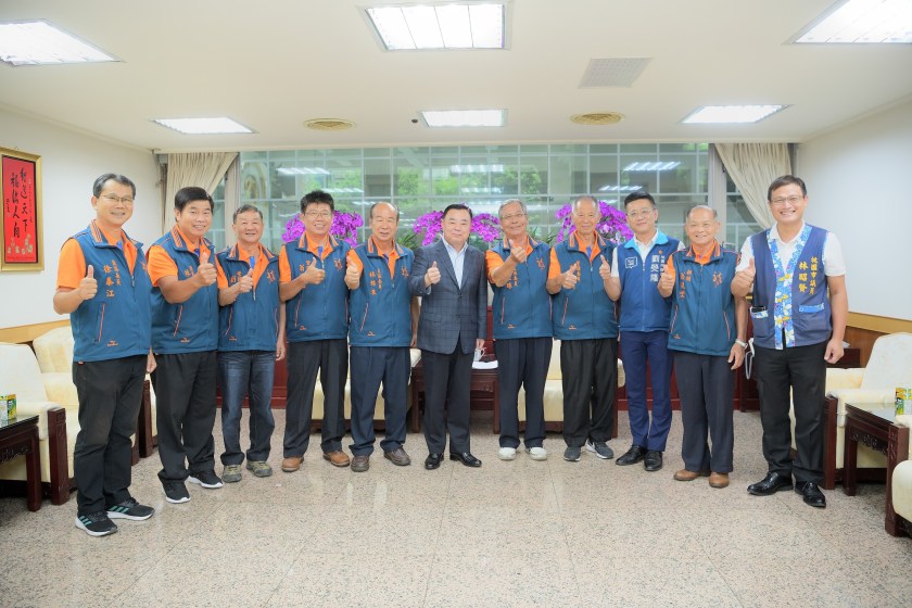 龍潭龍元宮顧問及管理監察委員等9人在新任林錦浪主任委員的帶領下,由徐玉樹、林昭賢、劉熒隆等3位議員陪同,於8日上午參訪桃園市議會,並由邱奕勝議長親自接待,雙方對於龍潭地區的發展交換意見,場面十分熱絡。