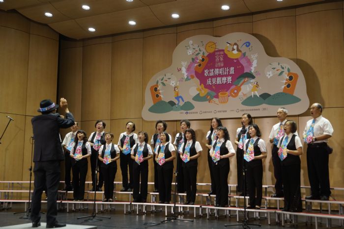 桃園市政府客家事務局13日舉辦「2020桃園客家音樂節」首場活動─歌謠傳唱計畫之成果觀摩賽,20個參賽團隊一早便齊聚客家文化館開嗓練唱,期能發揮最佳表現,展現2個多月來的練唱成果,一舉奪冠。