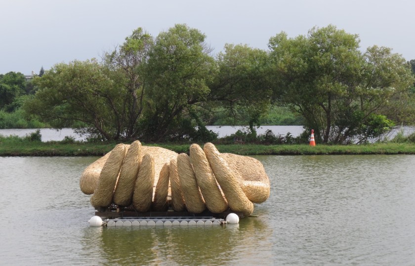 「水‧源」作品,象徵著人將水帶往陸地,此水孕育萬物滋養眾生