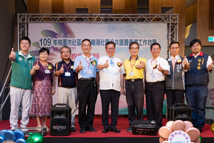 鄭文燦提到,社大時常舉辦社團活動,藉此凝聚學員向心力,109年度共有10個公共性社團獲得推薦。鄭市長也特別感謝25位優良志工,他們服務時數累計超過300小時,有的甚至超過2,000小時,其中黃許麗玉於新楊平社大擔任志工,經常至關懷據點教導長輩們畫國畫、製作造型氣球、跳有氧舞曲等,讓長輩們的生活充滿活力;蘆山園社大的簡慧敏志工則積極協助社大辦理各項活動,從活動中看見自己的價值;中壢社大的鍾金娥原為社大學員,擔任志工後扮演師生間重要的溝通橋梁;八德社大李敏發志工則在社大服務超過10年,他發揮電腦專長,協助社大辦公室電腦設備維護工作。