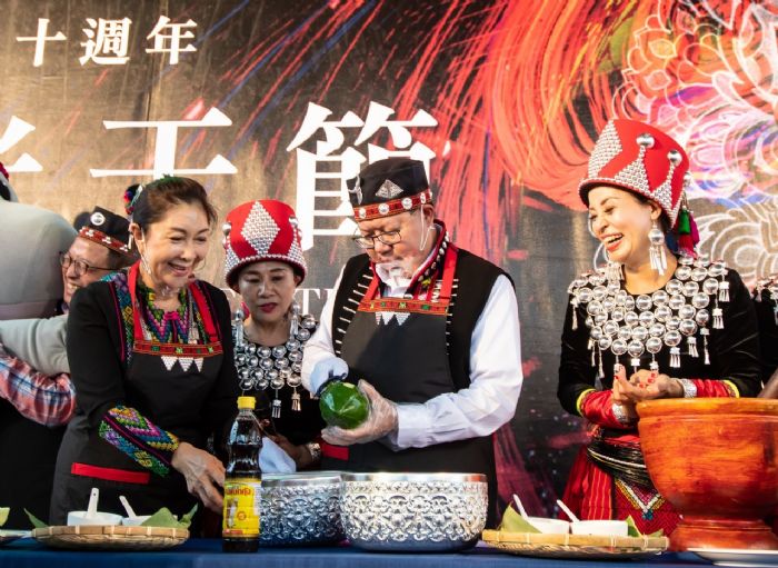 桃園市長鄭文燦27日上午出席「2020龍岡米干節-廚藝小旅行活動體驗」。鄭市長特別換上雲南傳統服飾,動手做「涼拌木瓜絲」料理給現場民眾品嘗,並透過直播與網友分享。