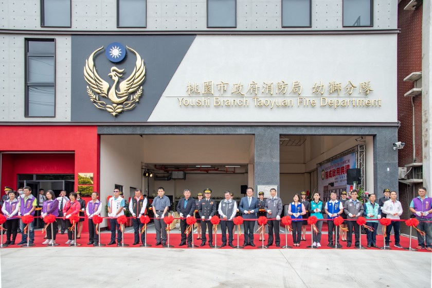 桃園市長鄭文燦8日上午前往楊梅區,出席「桃園市政府消防局幼獅分隊重建工程落成啟用典禮」。鄭市長表示,為提供消防隊員執勤、備勤更好的環境,市府積極推動消防廳舍的更新,今日落成啟用的幼獅分隊廳舍,為升格後第6個落成啟用的消防廳舍,工程總經費為6,010萬元,中央補助4,120萬元,市府補助1,890萬,為4層樓建築,總樓地板面積1,056平方公尺(約320坪),曾榮獲「桃園市政府第四屆公共工程金品獎」佳作及「2020國家卓越建設獎」規劃設計類優等獎項,為桃園五星級的消防廳舍,將大幅提升防災與守護社區安全的能量。