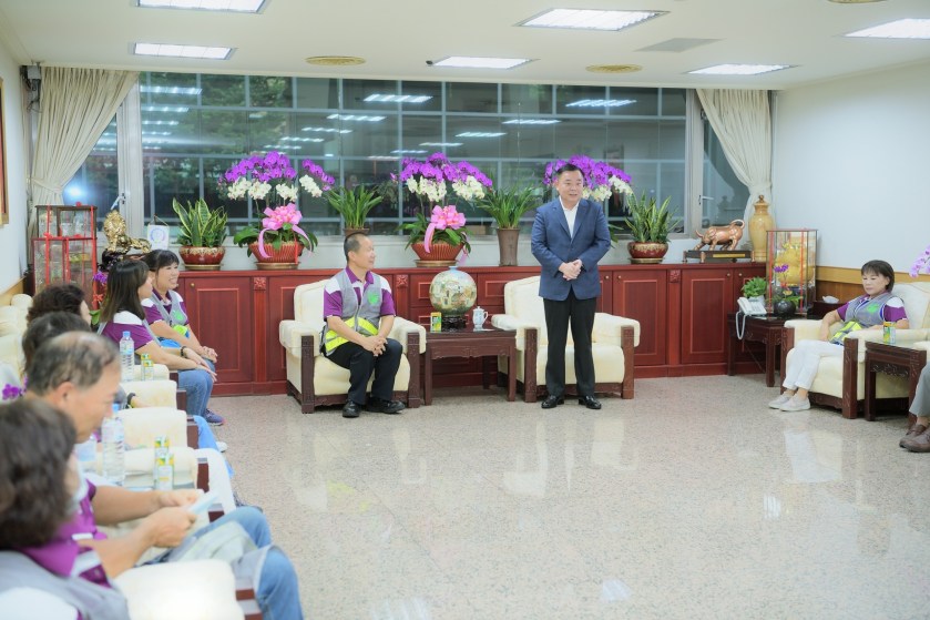 桃園市中壢區黃墘溪水環境巡守隊一行28人在大隊長謝恩然的帶領下,與同時身為水巡隊隊員的葉明月議員陪同下,13日上午至桃園市議會參訪,由議長邱奕勝親自接待,並對水巡隊平時維護溪流環境的付出表示感謝,同時也希望大家能夠持續保持熱忱,共同為守護桃園的河川及溪流環境來努力。