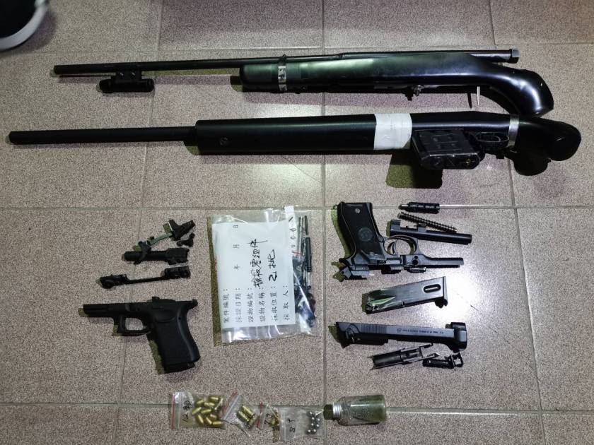 經查祝姓男子於家中從事改造槍枝並販賣等情事,楊梅分局立即成立查緝小組展開蒐證埋伏跟監工作,待蒐報齊全後報請新竹地方法院核發搜索票核准,22日下午見時機成熟,遂出動10名警力持搜索票至祝姓男子家中查獲改造槍枝。