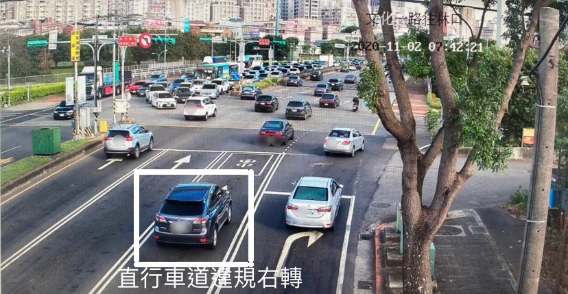 龜山警分局統計11月2日科技執法汽車違規共計812件,文化一路往林口274件、往龜山533件、闖紅燈5件,交通管理處罰條例第48條1項2款不遵守標誌標線(轉彎車佔用直行車道)807件、53條1項1款(闖紅燈)5件。