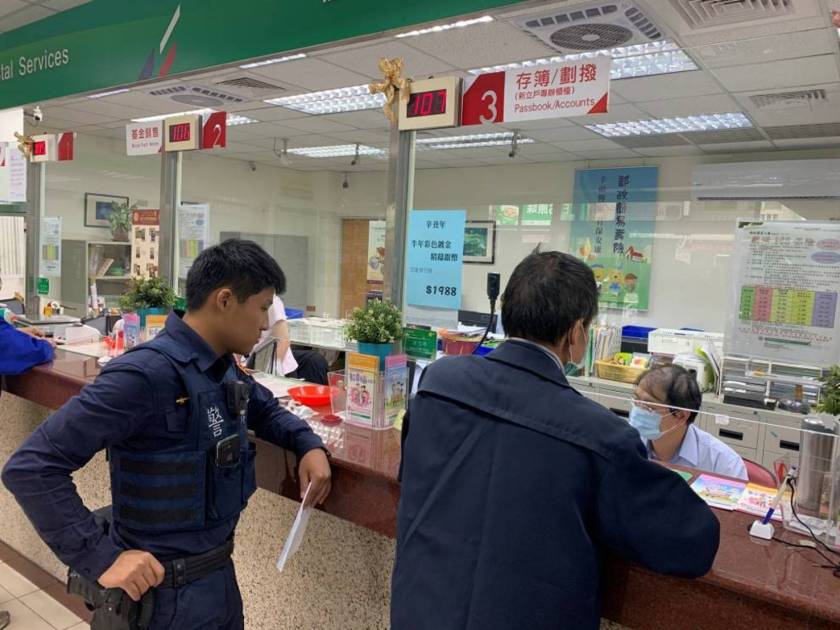 草漯派出所警員蕭凱、謝在哲獲報後立即與草漯郵局的經理聯繫,得知該筆款項尚未匯到對方的帳戶,便馬上陪同老翁到郵局確認身分,順利將18萬元回存到老翁的帳戶,老翁非常感謝員警的熱心協助,讓他能順利保住辛苦存下的積蓄。