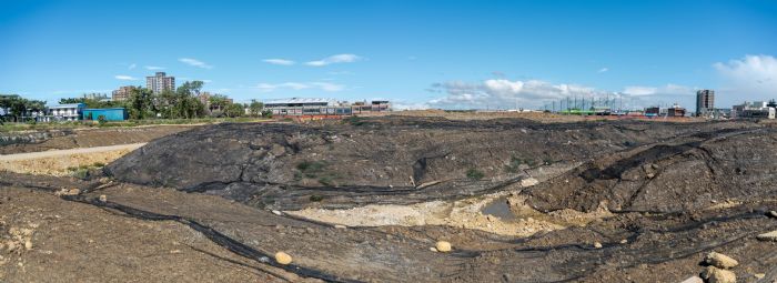 桃園市長鄭文燦(6)日上午前往八德區視察大湳滯洪池工程進度時表示,為解決八德區和強路一帶及和平路至鶯歌系統交流道易淹水問題,市府斥資13億元將大湳水上樂園(員63號埤)改建為大湳滯洪池,工程於今(109)年3月開工,預計111年底完工,滯洪量15萬立方公尺,並規劃設置管理中心、河岸公園及環池步道,治水、親水一舉兩得。