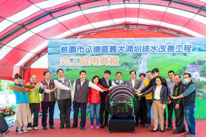 桃園市長鄭文燦(6)日上午前往八德區,出席「桃園市八德區舊大湳圳排水改善工程完工啟用典禮」,鄭市長表示,市府檢討八德區淹水熱點,推動舊大湳圳排水改善工程,起自中山路與豐德路口、往西至社角支線止,總長度為1,413公尺,工程經費約1.15億元,由內政部營建署補助0.81億元、市府自籌0.34億元,工程兼具防洪、灌溉、景觀、休閒等多方面效益,並曾榮獲2020國家卓越建設獎及109年度市府公共工程金品獎肯定,市府也將持續推動八德區包括滯洪池、雨水下水道、污水下水道等基礎建設,提升八德都市防災能力與生活品質。