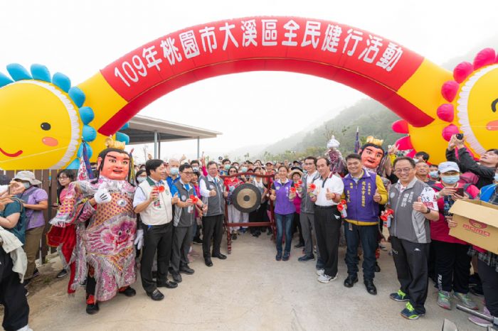 桃園市長鄭文燦7日上午前往石門水庫溪洲旅遊服務區,出席109年大溪區「低碳溪遊,健康樂活」全民健行活動。鄭市長表示,大溪區公所今日規劃全長約5.5公里的健行路線,沿途行經大漢溪畔自行車道、螢光蝶舞綠濕地、溪州福山巖等景點,逾萬名鄉親熱情參與,希望透過健走活動帶領市民朋友發掘大漢溪流域的觀光潛力與魅力。
