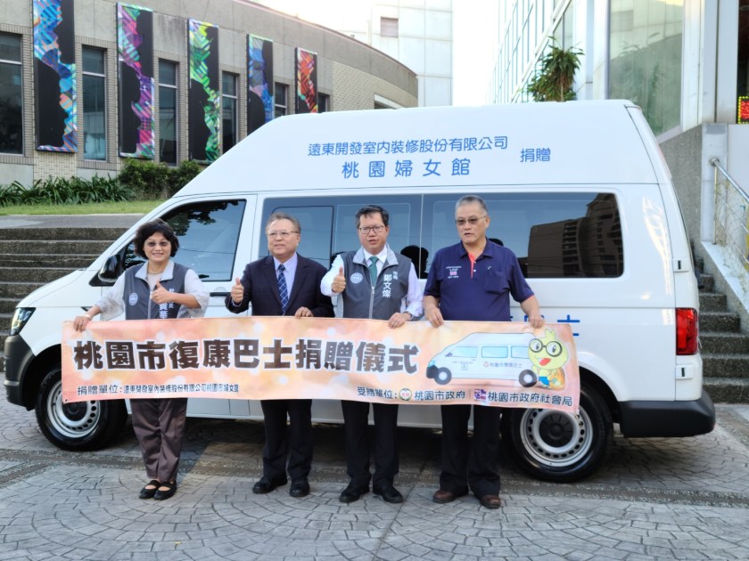 遠東開發室內裝修股份有限公司16日捐贈桃園市1輛高頂復康巴士,由桃園市長鄭文燦代表受贈。鄭市長表示,遠東開發室內裝修股份有限公司承攬許多大型機關採購及民間案件,也是桃園市的公私協力夥伴,104年起承接本市婦女館館舍營運、世大運期間承接本市巨蛋體育館內部地板與座椅整修,近年也投入桃園77藝文町文化場館運作,與桃園市各單位合作密切。