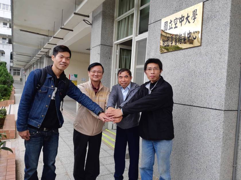 同名同姓「劉得正」與空大桃園中心教授廖建智(左二)江啟先主任(右二)合影。