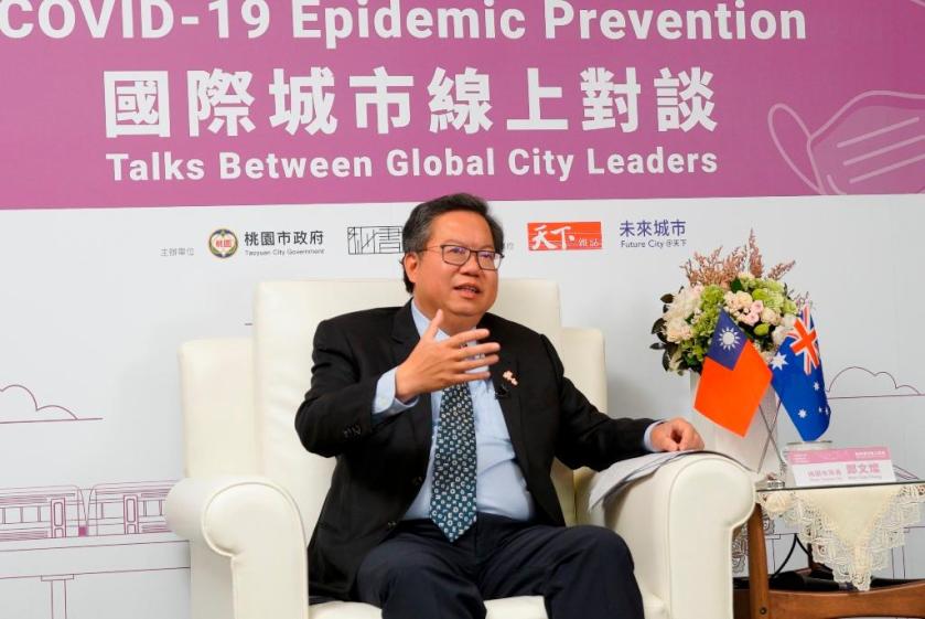 桃園城市外交未因疫情停歇。桃園市長鄭文燦30日上午出席「國際城市線上對談」視訊會議,與澳洲黃金海岸市市長泰特(Thomas Richard Tate)針對兩城市防疫措施、疫情紓困及疫後觀光等議題交流。
