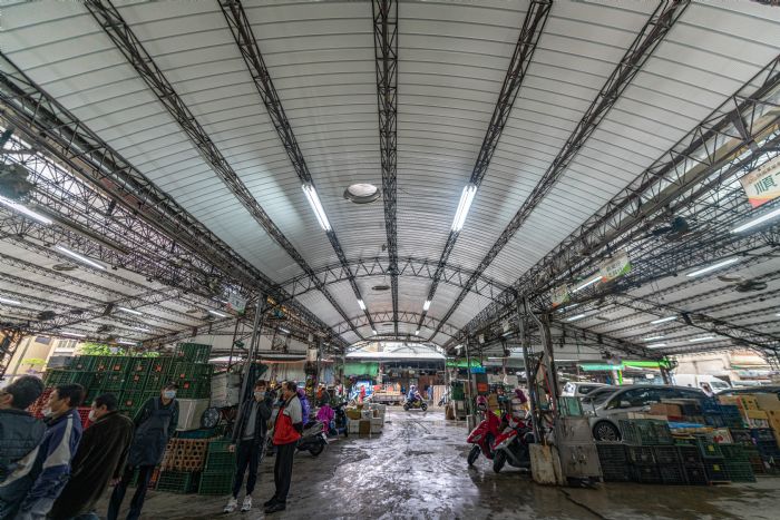 鄭市長表示,「桃園果菜市場屋頂更新及整修工程」包括「屋頂更新」及「廁所整建」兩部分。在「屋頂更新」工程方面,石綿屋頂全面更換為鋁鋅合板,原結構生繡處刮除重新上漆,屋頂排風球數量加倍,增加通風排氣效果。根據果菜公司實測,在中午陽光直曬的情況下,場內溫度由改善前45度降到34度,降溫效果相當明顯。此外,天花板管線也進行整理,燈具全面更換為LED燈管,讓市場整體環境更加明亮;在「廁所整修」工程方面,原有壁面及地坪全面翻新,重新規劃格局及管線,讓供應商及承銷人都有乾淨明亮的廁所可以使用。